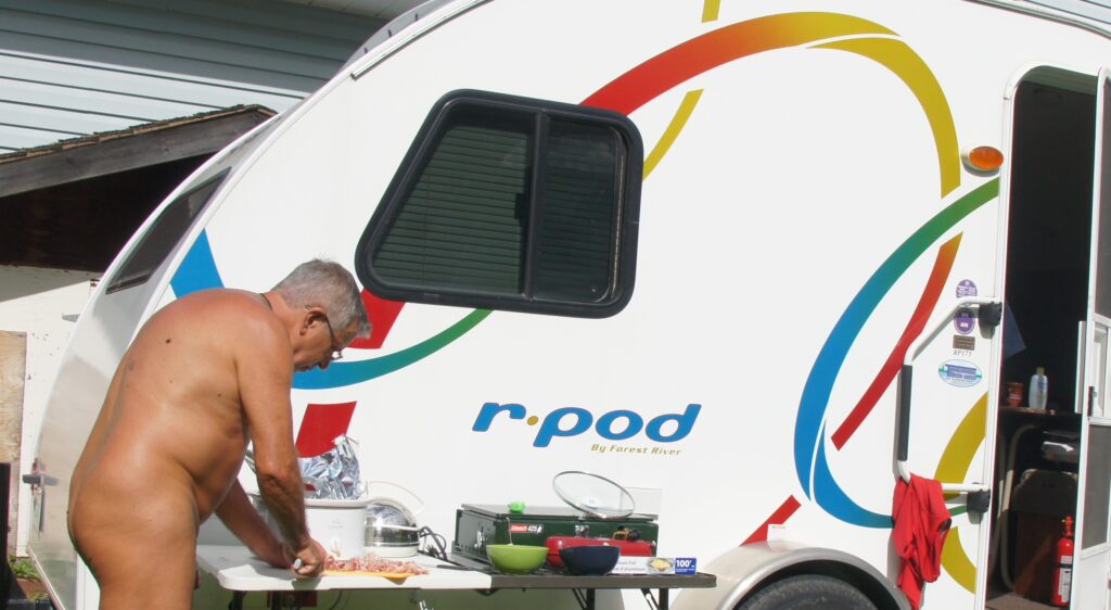 Since I had somehow forgot to pack the power supply for my laptop, I was forced to enjoy the sunshine without interruption for most of the days that passed. It was the first time I had been to the acreage for a nude gathering without my wife. So, I had to make do with calls home in the morning and late evening to fill her in with my adventures and to find out how her days and nights had passed.