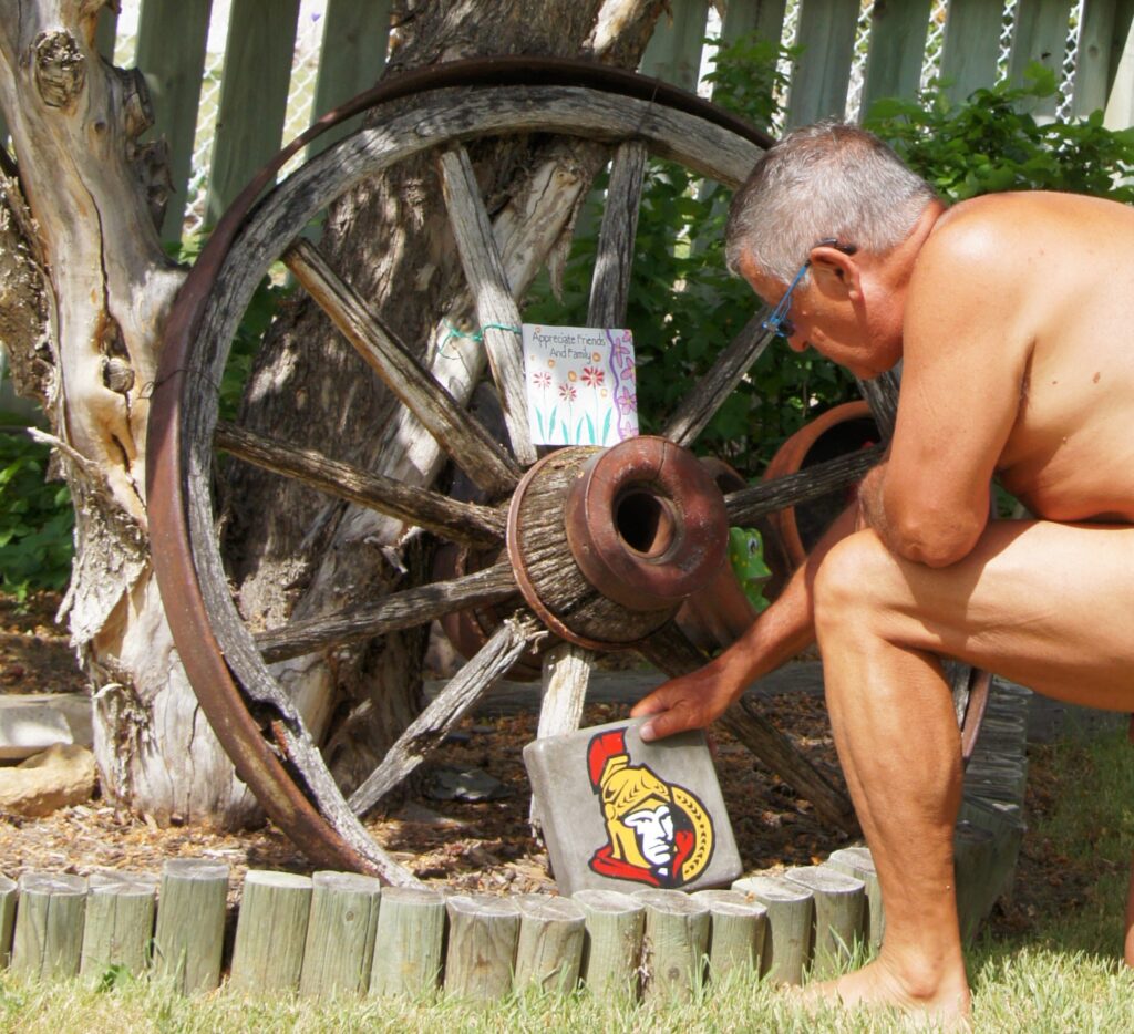 I got a gift, a garden stone. I am a long-time fan of the Ottawa Senators NHL hockey team. The image on the garden stone is the image that is found on the team’s hockey jerseys. I have a small collection of these hockey jerseys which my grandchildren wear when they are at our home when the team is playing on television.