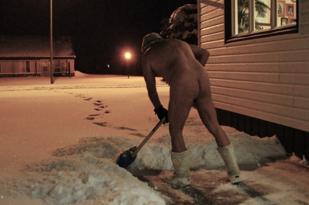 In the afternoon, I shovelled off the back deck and the pathways in the backyard, all of it while nude. It was warmer working in the sunshine.
