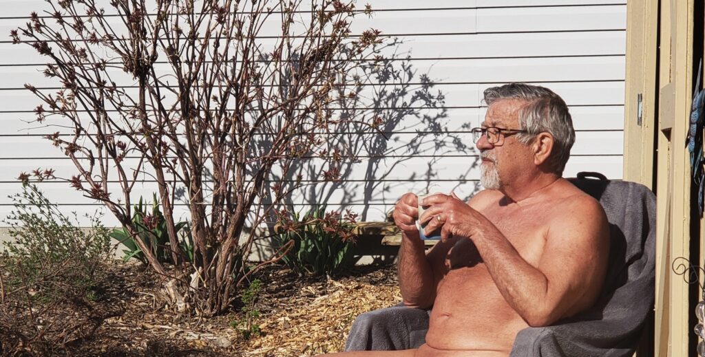 As usual, I began the day with coffee. I have to admit that I am addicted to coffee for the morning. Though it froze last night, once the sun hit the corner by my garden shed, the temperature was bearable. With coffee and then breakfast done in this corner, it was time for me to get to work on my various projects.