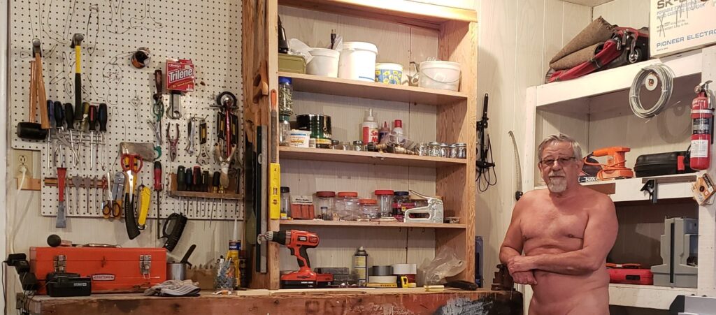 I still have a partial wall to finish by the cabinet and another wall to finish going to the overhead garage door. Later in the afternoon, weather permitting, my wife and I will go for another walk into the countryside. That walk, unlike my other projects, is not clothing optional.