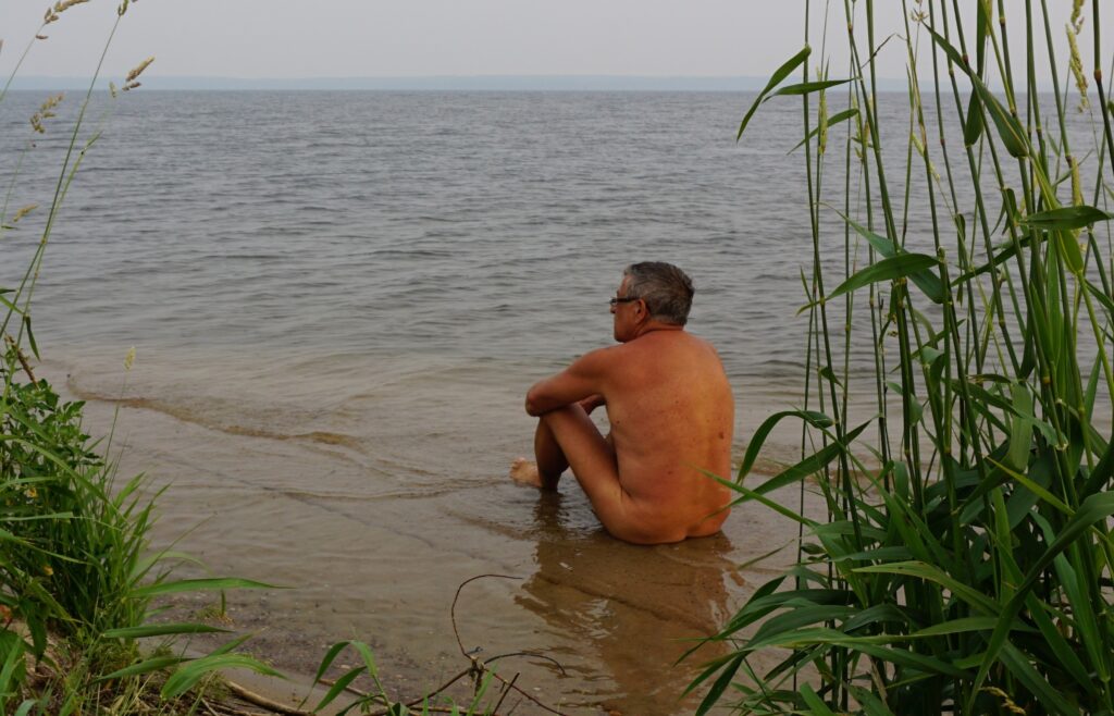 I risked going for a walk along a few paths and went to the edge of the lake. I wasn’t exactly nonchalant about walking nude without a pair of shorts to put on just in case. No one was up as early as I was from the absence of people and noise. I had assumed I could hike without the need for clothing. Well, to be honest, I didn’t think about it much at all. I just wanted to walk au naturel
