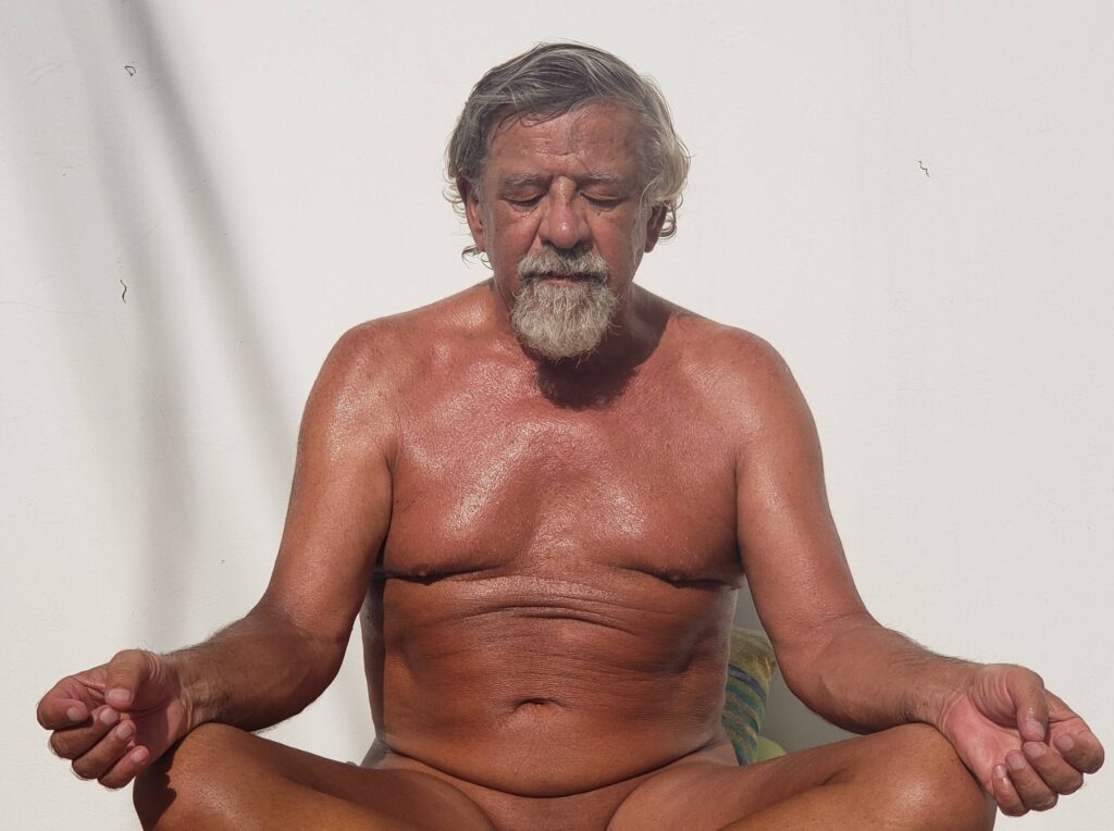 Sunbathing shifts from somewhere down the beach to a corner near the patio which is hidden from potential passersby. This is the same location as where I meditate. This is how a naturist self-isolates in Ecuador when there is a bit of outdoor private space. We are lucky as the three-house compound is empty with the exception of the two of us.