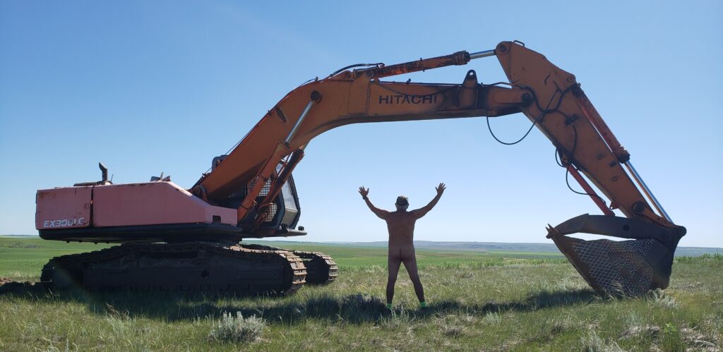 Free-hiking on a perfect morning was all that I could have hoped for with the only drawback being spear grass which dug into my socks and decided to bite me. I walked 8.8 km at an 11 km/hr pace which is relatively decent for walking. Half of the walking was on a dirt path separating two fields planted with wheat and lentils. The second half was through rolling hills following an old, unused trail to reach a hilltop that had very old farm equipment parked. Joining the two ancient pieces was a newer piece of equipment seen in the photo.