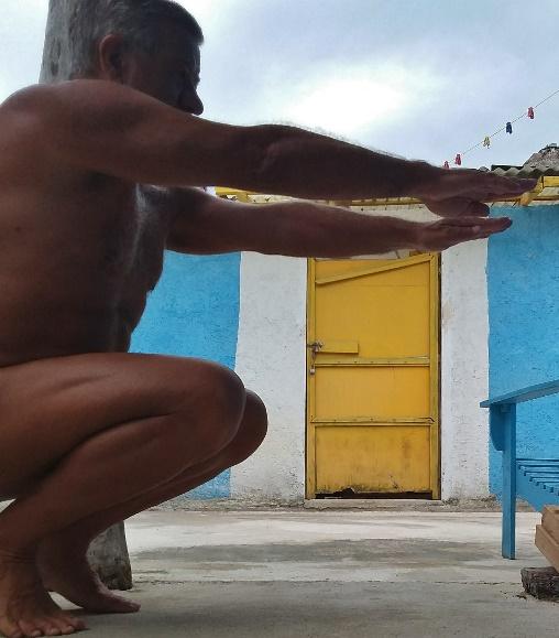 Each morning I begin with a few exercises while still in bed, stretching exercises to help loosen up leg muscles for the most part. Then, I do a few floor exercises for more stretching and hopefully, abdominal tightening such as this pose taken when morning meditation was done. If I am determined enough, I should be in better shape from a visual as well as physical point of view. I don’t want to give in to age as I have too many plans for long-distance walking and for countries yet to visit. This photo was taken two days ago when I took advantage of being next to the clothing-optional beach.