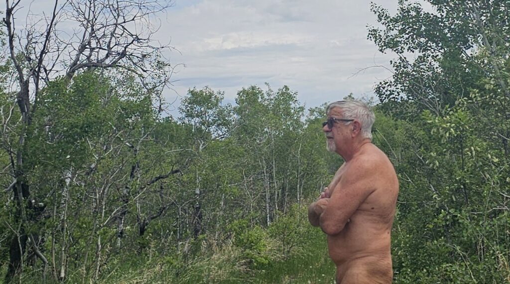 Since our return from Mexico at the end of March, there have been a number of reasons why I have continued to procrastinate with returning to using this blog site, none of which are valid, but when taken together, they did block so much of my energy. The world isn’t going to change to make it easier for me have better focus. Still, being a naturist hasn’t changed. I steal whatever moments I can to be clothing free. For the most part, until late May, there has been very little reason for being nude outdoors.