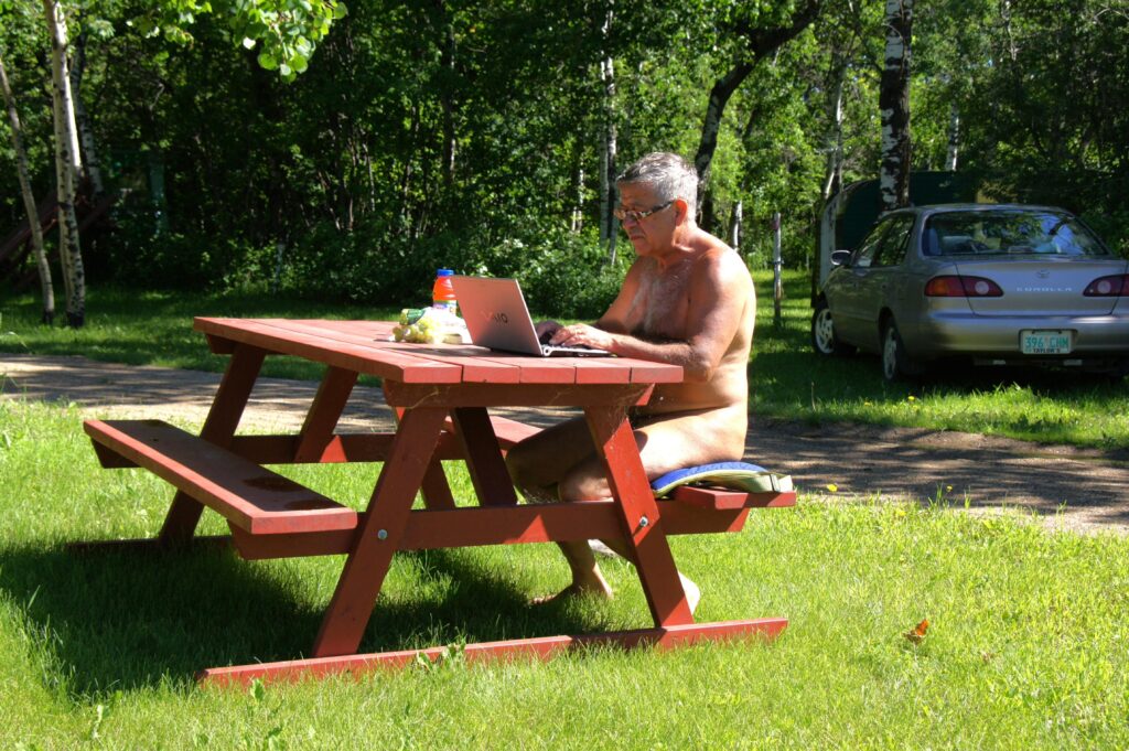 It is 10:30 and I am at Tim Horton’s in Fort Qu’Appelle where I have begun today’s post. I got a small bit of grocery shopping completed at the grocery store across the road from the coffee shop and will soon be making the last leg to Green Haven shortly. With any luck, I will be on site and nude by noon.