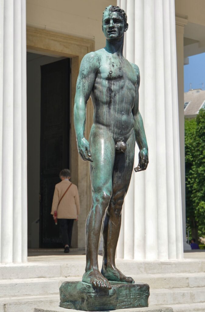 While in Volkspark, I made sure to get my own photo of the Vulnerable Man found in front of the Temple of Theseus. After a late lunch, we visited the Holocaust Memorial and two more museums. My camera was kept busy. I wanted to put a number of these photos here but decided against it as I also have another blog site dedicated to our travels without the issue of nudity. In the evening we headed back out for a concert of Strauss an Mozart. I found this statue of a man holding up a live pigeon in the tiniest of parks not far from our apartment. We had a full day which left us pleasantly exhausted.